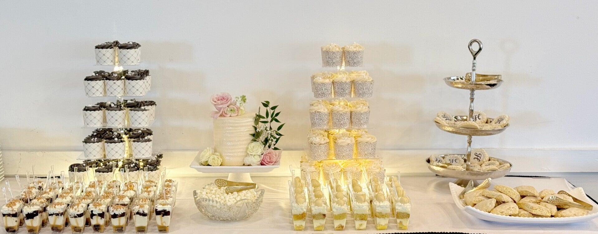 A full, elevated dessert table for weddings & large events